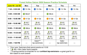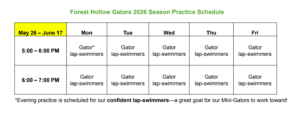 Forest Hollow Gators 2026 Season Practice Schedule: